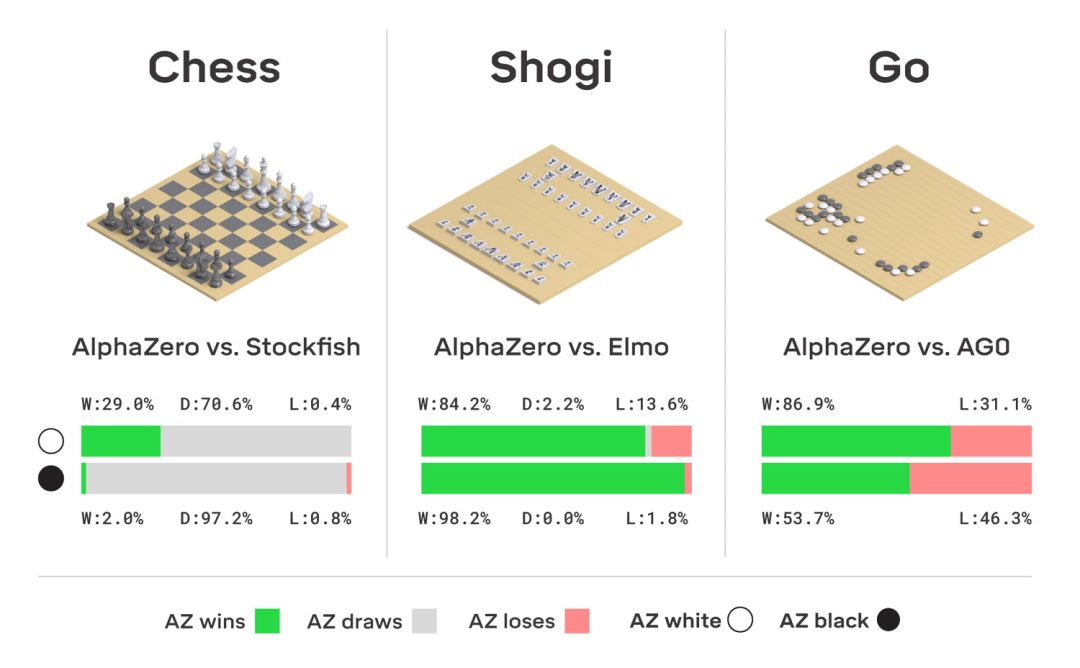 表中显示 AlphaGo Zero 是最新的 SOTA 围棋 AI,但实际上我们都知道,应该是近期上了 Science 封面的 AlphaZero: