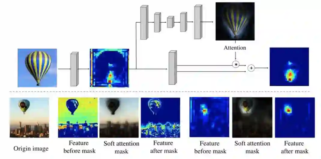 Residual Attention Network,在图像分类问题上,首次成功将极深卷积神经网络与人类视觉注意力机制进行有效的结合,并取得了远超之前网络结构的准确度与参数效率。仅用与 ResNet-50 的相当的参数量和计算量就得到了远超过了 ResNet-152 的分类性能。今年 ImageNet 检测冠军团队已经在 LOC 任务重使用了本文的机制。模型、参数等都可以参考网站 https://github.com/buptwangfei/AttentionNet