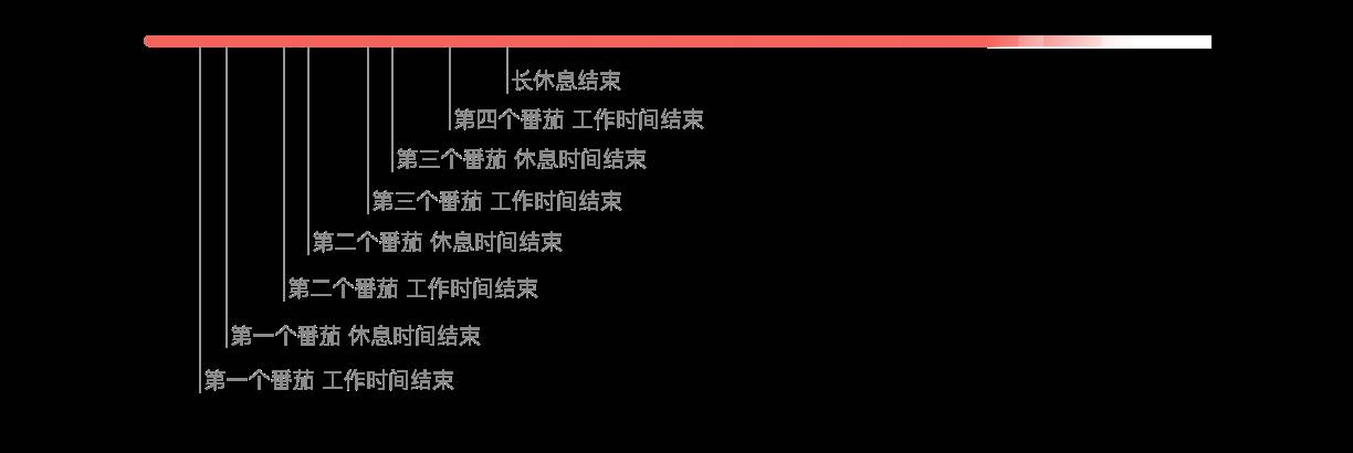 那有没有办法比较优雅的做到这一点呢?我当时想出了这样一种方案,虽然看起来和上面的计时的做法一样纠结。我们知道,推送通知是可以设置重复的。假如按照初始条件每四个番茄进行一次长休息,我们也许就可以指定如下 8 个位置定时重复的推送通知,使其按照相同的时间间隔(工作时间 x 4 + 休息时间 x 3 + 长休息时间)重复推送即可。