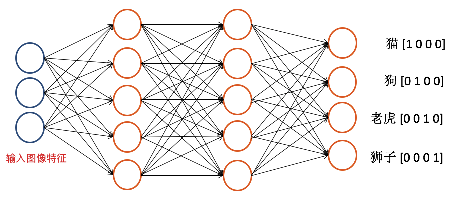 前面的 2 层神经网络的输出层只有一个节点,所以只能输出 2 分类问题(0 代表 猫,1 代表狗)