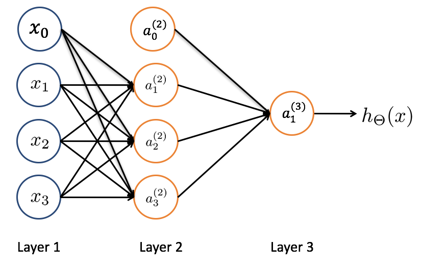 根据这个生物连接,科学家设计出了经典的 2 层神经网络。
