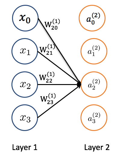 如果我们把 2 层神经网络的输入层去掉,如下图: