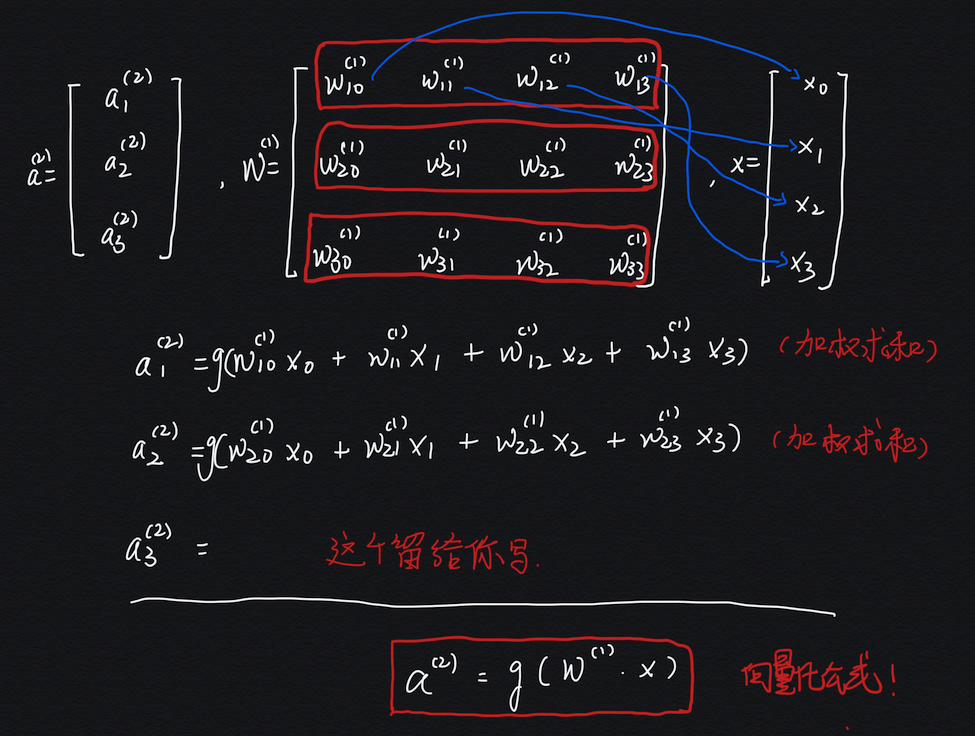 通过向量化表示,最后用一个向量公式就可以计算所有中间节点的输出: