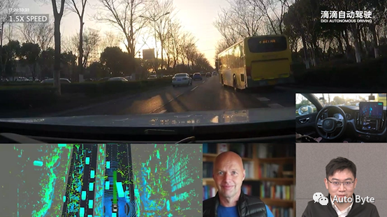 4月8日, 滴滴自动驾驶发布了一支自动驾驶长达5小时、未经剪辑的无接管自动驾驶视频。在该视频以多倍速播放的过程中,滴滴自动驾驶公司COO孟醒,邀请Udacity创始人兼董事长,谷歌无人驾驶项目创始人——Sebastian Thrun连线讨论视频中的技术亮点。