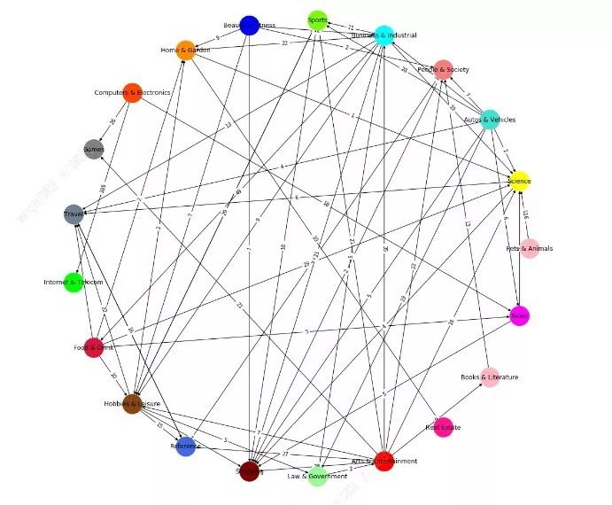 通过对 Youtube8M 数据集的部分标签数据进行分析,可以得到一个图来表征各个标签之间的关系,如图二所示。