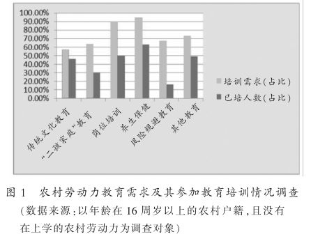 从我们调查情况来看,目前,农村社区教育面临着“两难”的困境:一方面,存在着人民对公平而有质量的社区教育需求的日益增长和社区教育发展不平衡、不充分之间的矛盾(见图1),如,“二孩家庭”教育、老年人“居家养老”教育、“风险意识”教育等教育需求与日倶增,农村社区教育很难高质量地满足社会大众对教育的需求;另一方面,不记学习“成果”的教育培训,影响居民参与学习的积极性。因没有留下证书、成果等“印记”的教育培训,很难得到农民的认可并吸引农民参与。农民更青睐“短平快”“立竿见影”式的“自然”的教育培训。可见,只有让教育转化为看得见、摸得着的实实在在“成果”,才能激发农民参与社区教育的主动性。