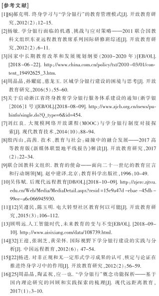 我国2010年颁布的《国家中长期教育改革和发展规划纲要(2010-2020年)》提出,要促进各级各类教育纵向衔接、横向沟通,搭建终身学习“立交桥”,为学习者的学习需求提供多次选择机会,满足个人在终身发展中对学习多样化的需求;同时,提出建立学习成果认证体系,建立学分银行制度[3]等观点。2015年,国家提出建立个人学习账号和学分累计制度,以畅通继续教育、终身学习通道。2016年,《教育部关于办好开放大学的意见》提出,要建设“学分银行”,实现学习成果积累和转换。上述战略性的观点,充分凸显了学分银行的价值、地位。