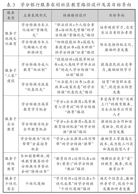 (2)有利于丰富学分银行理论。通过学分银行服务于农村社区教育的理论研究和实践探索,逐步形成具有农村区域特点和项目特色的学分银行实践,并升级为“农村社区教育学分银行”经验,最终,通过归纳、提炼,上升到理论高度,可形成对农村社区教育具有指导和借鉴意义的学分银行理论。