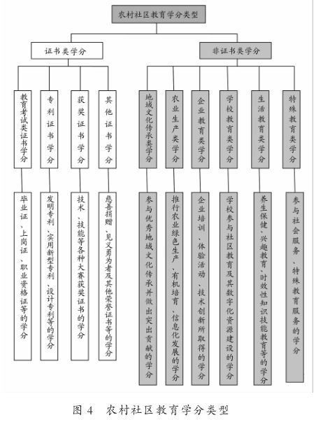 因此,如果以证书作为学习成果的分类界限,那么,一个人的学习成果不外乎两大类,即证书类学习成果和非证书类学习成果。而农村社区教育学分也主要包含两大类:证书类学分和非证书类学分。