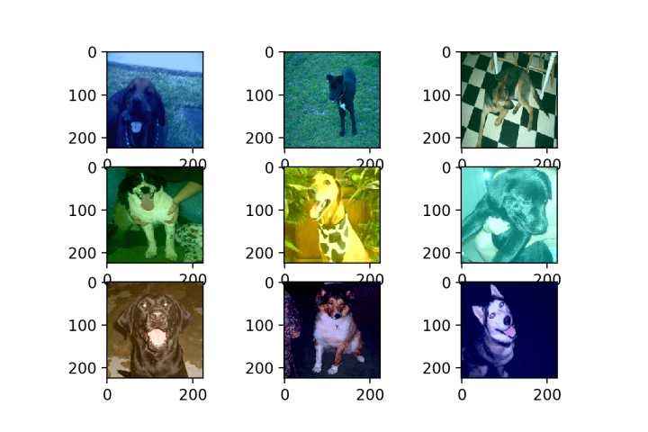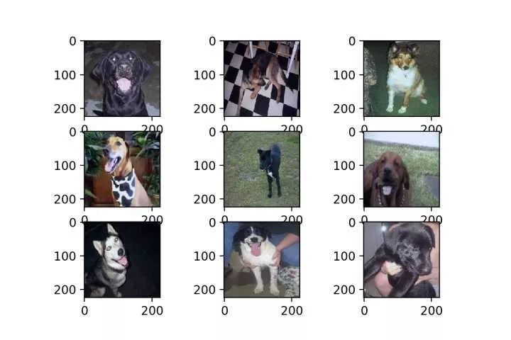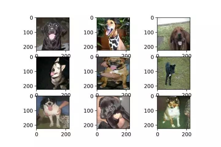 我们测试选用的是kaggle dogs vs cats redux 猫狗大战的数据集,随机选取了9张狗狗的照片,这9张均被resize成224×224的尺寸,如图1: