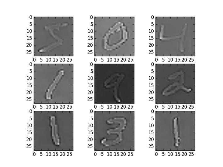 很抱歉的是,本人使用keras的官方演示代码,并没有复现出zca_whitening的效果,当我的图片resize成224×224时,代码报内存错误,应该是在计算SVD的过程中数值太大。后来resize成28×28,就没有内存错误了,但是代码运行了一晚上都不结束,因此使用猫狗大战图片无法复现效果,这里转发另外一个博客使用mnist复现出的结果,如下图4。针对mnist的其它DataAugmentation结果可以看这个博客:Image Augmentation for Deep Learning With Keras,有修改意见的朋友欢迎留言。