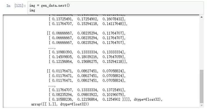 图片经过rescale之后,保存到本地的图片用肉眼看是没有任何区别的,如果我们在内存中直接打印图片的数值,可以看到以下结果: