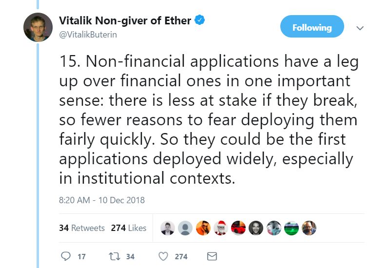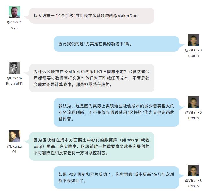 在区块链技术的应用方面,以太坊创始人 Vitalik Buterin 有着自己的看法: