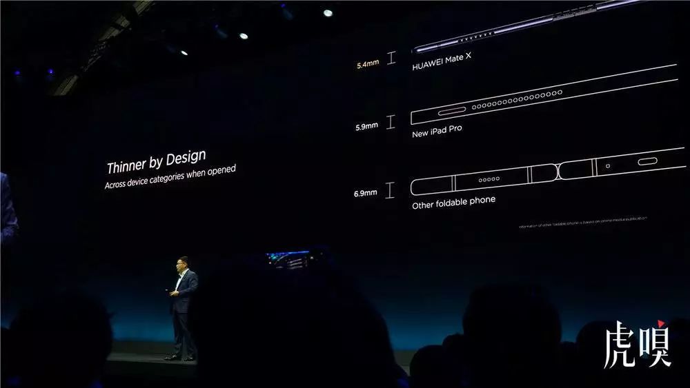 这种强烈的感受首先来源于“薄”,虽然之前韩国友商发布会和华为自己广告海报中均没有透露自己机身的厚度,但两者观感上的差距异常明显。直到余总今天的发布会上自己给出了答案——5.4毫米,比那个网上被疯狂吐槽会变弯的iPad Pro还薄了0.5毫米。