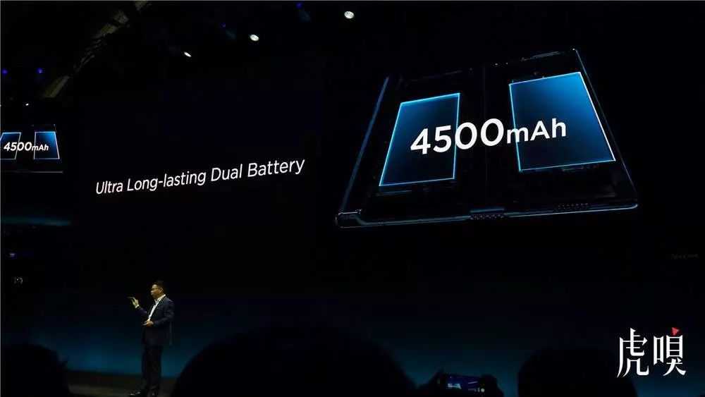 第二点有趣的则是电池和充电技术。正如上文中写到的,Mate X第一眼就给人一种很薄、很紧凑的感觉,让人不由得担心其电池容量是否过小,好在余总给出了一个让人满意的答复:在5.4毫米厚的机身里面,华为还塞进了两块总计4500毫安的电池, 还顺便利用这两块电池折腾出了55W的充电,30分钟就可以充电超过80%,的确挺快。