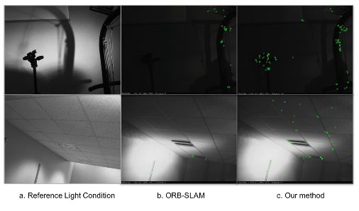 SLAM技术在光线变换条件下的稳健性仍然是机器人技术的核心问题。随着场景照明的改变,会由于对比度较低的原因而不能正确地提取到特征点,或者由于描述符有很大的差异而不匹配。