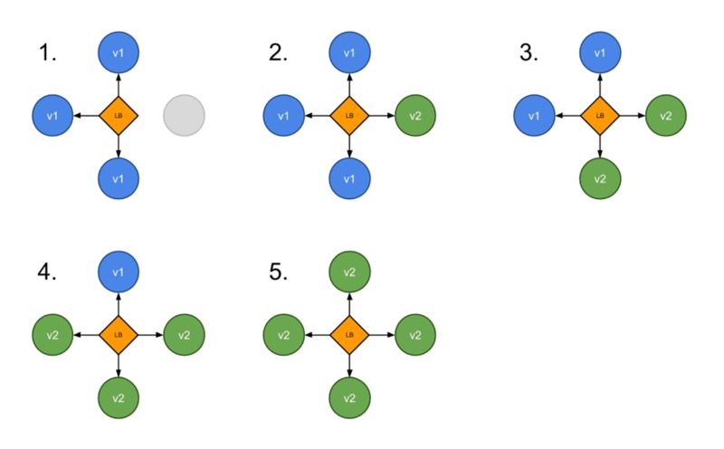 滚动 Rolling:渐进式创建新版本,然后停止老版本,自动完成整个流程。