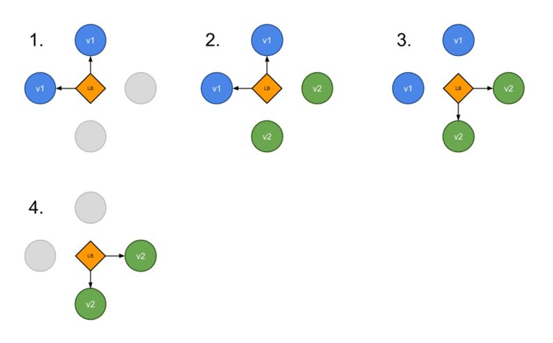 蓝绿 Blue/Green:创建出新版本,与老版本并存,通过切换流量实现发布与回滚。