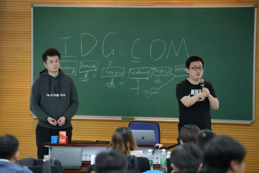 图:IDG资本刘雨坤(左)和庞紫璇(右)在清华大学宣讲现场 Q&A