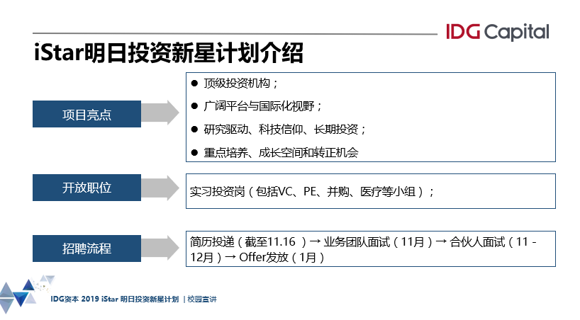 从事投资十余年,甚至二十余年的IDG资本合伙人们开诚布公,向同学们讲述他们如何理解投资的本质,投资究竟在做什么,什么样的人适合做投资,以及投资是一份怎样的事业。以下,我们摘选「iStar明日投资新星」宣讲重点,以供同学们参考。