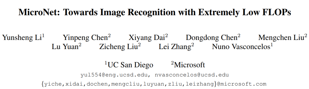 [1] MicroNet: Towards Image Recognition with Extremely Low FLOPs
