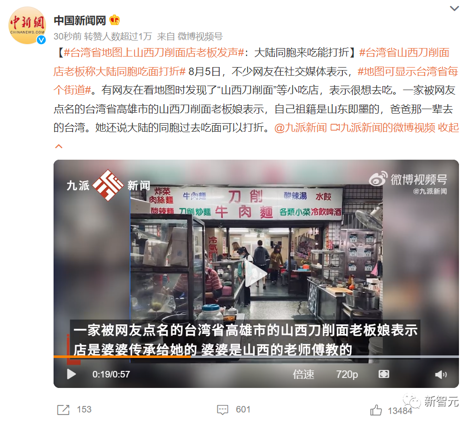 刚刚,「台湾省地图上的山西刀削面店」在微博上爆了!