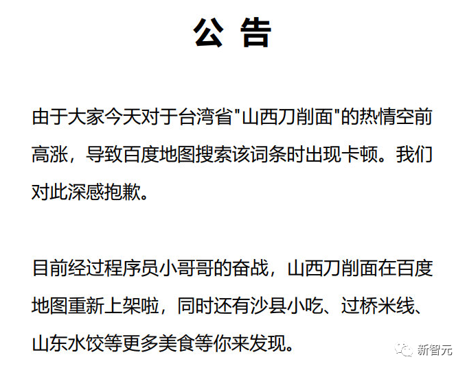 【新智元导读】这几天,手机里的台湾省地图越来越清晰了。吃货们发现海峡对面的「山西刀削面」,激动得把百度地图都搞崩了!