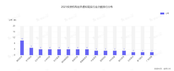 虽然受疫情影响创投活跃度有所波动,但部分知名投资机构2021年仍积极布局虚拟现实行业,和2020年相比腾讯和朗玛峰创投等机构在虚拟现实行业继续加码,增加投资企业数量,字节跳动和红杉中国等也相继入局。
