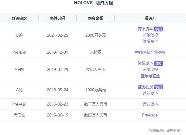 “6DoF交互技术”是VR最核心的关键技术之一。成立于2015年的NOLO VR公司是目前全球除Oculus以外唯一拥有并搭载完全自主知识产权6DoF专利技术的移动VR硬件品牌商。公司在2021年已经完成2000万美元的B轮融资。