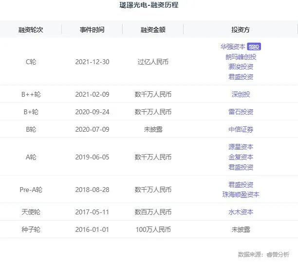近眼显示领域,光波导是当前探索的热点。成立于2014年的珑璟光电是国内率先构建阵列、光栅和体全息光波导全产品矩阵的光波导模组供应商。2021年已经完成B++轮和C轮两轮融资。