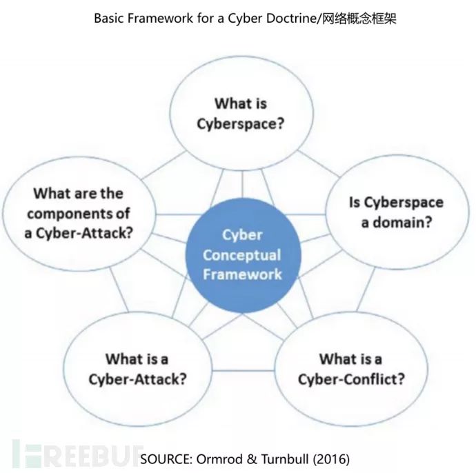 在学术文献中已经建立了网络防御理论的基本框架,并确定了 5 个问题,如下图所示,这些问题在制定网络防御理论时应该加以考虑。