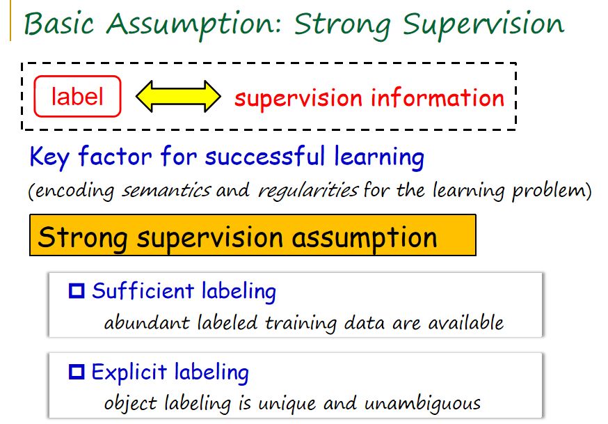 针对第一个部分的讲解,张教授从“监督信息”入手,指出“设计一系列标记训练样本并将其交给监督学习算法可以得到一个预算模型,我们可以基于这个预算模型预测新对象的标记。传统监督学习里面有一个重要概念就是标记,通常叫做监督信息。”而监督信息的质量很大程度上决定着监督学习问题的成败。