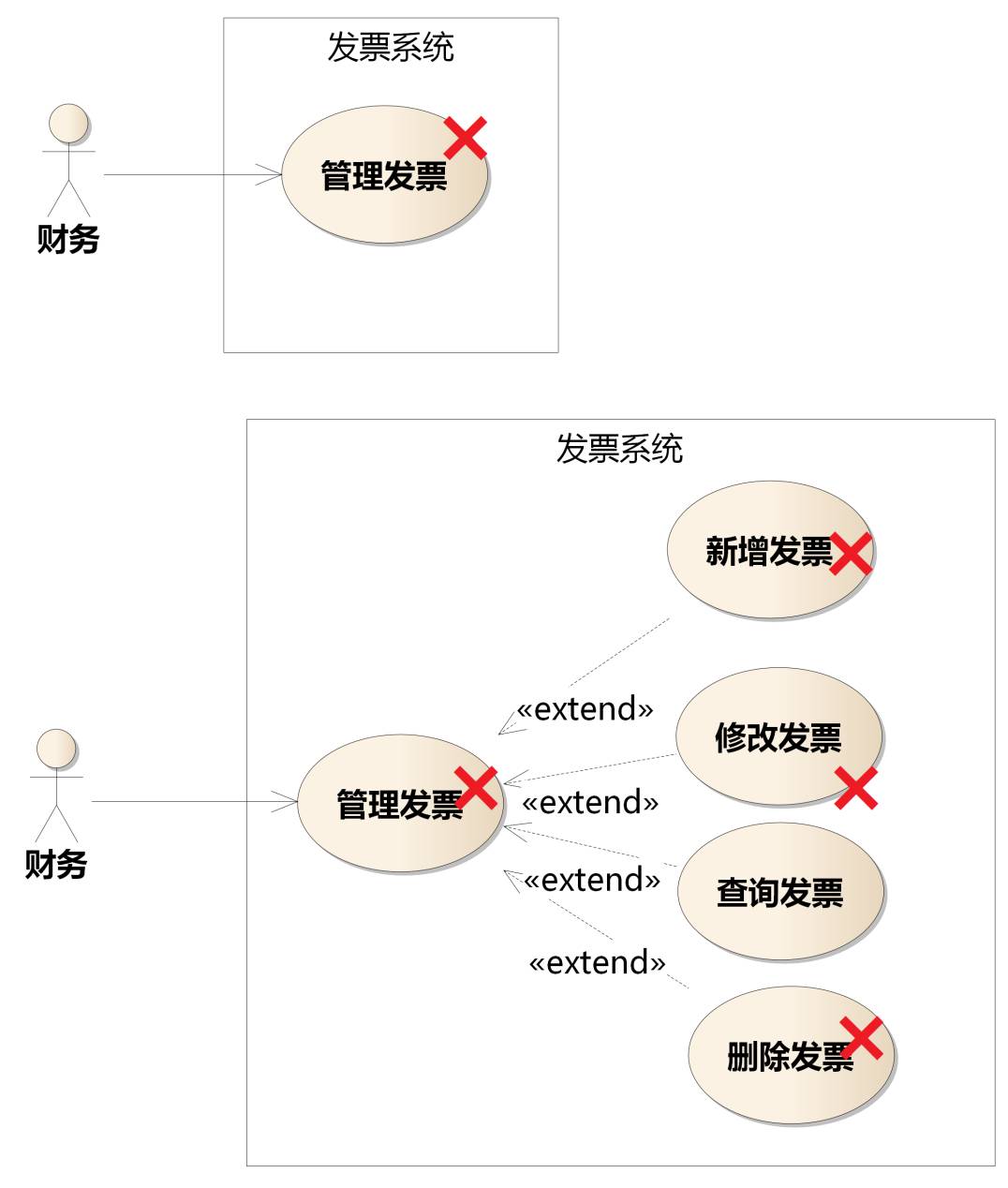 因为数据库里有一个“开票员”表,所以应该有“添加开票员”、“删除开票员”、“编辑开票员”、“检索开票员”等用例。这个思路是错的。