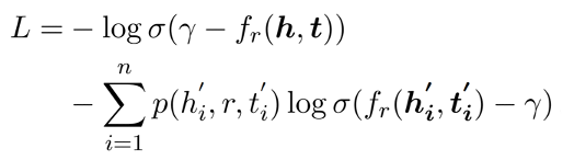 其中,γ是固定边界参数,σ是sigmoid函数,(h_i^',r,t_i^')是第i个负样本,补充定义如下