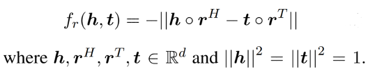 模型中使用的两个用于关系表示的向量将头尾实体分别投影到欧式空间,再最小化投影向量的距离。其形式化描述如下: