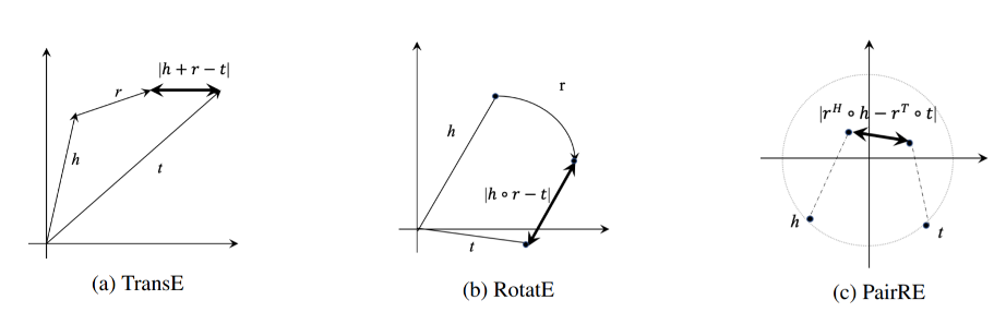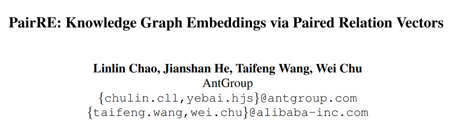 之前的TransH、TransD和TransR等方法致力于解决复杂关系表示问题,却只能编码对称/非对称关系,最新的RotatE在编码对称/非对称关系,逆向关系和组合关系上取得了优异的效果,但是复杂关系的预测依然具有挑战性。由此,论文提出了一种新的知识图谱嵌入方法PairRE,它能够同时编码复杂的关系和多种关系模式。
