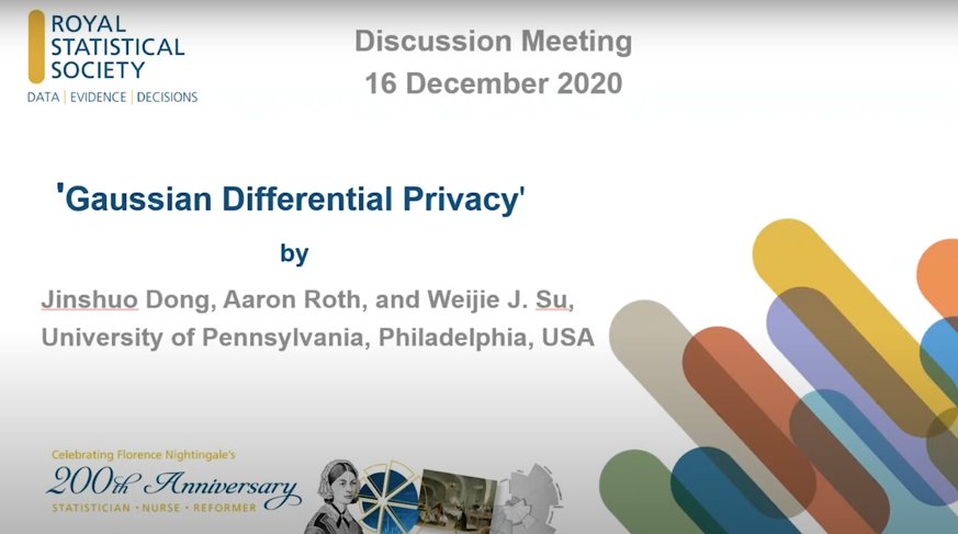 高斯差分隐私在英国皇家统计学会的特邀报告