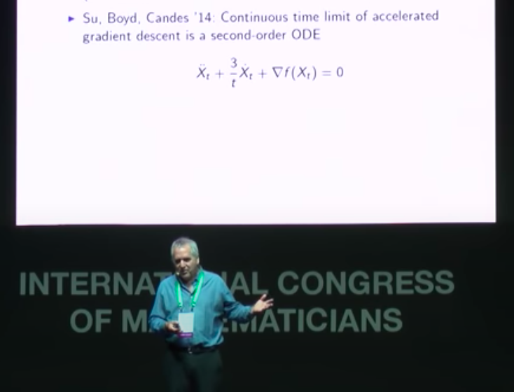 Michael Jordan在2018年国际数学家大会上介绍如何推广苏炜杰在机器学习优化算法上的工作