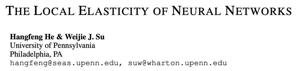 [3] H. He and W. Su. The local elasticity of neural networks. In International Conference on Learning Representa tions, 2020.
