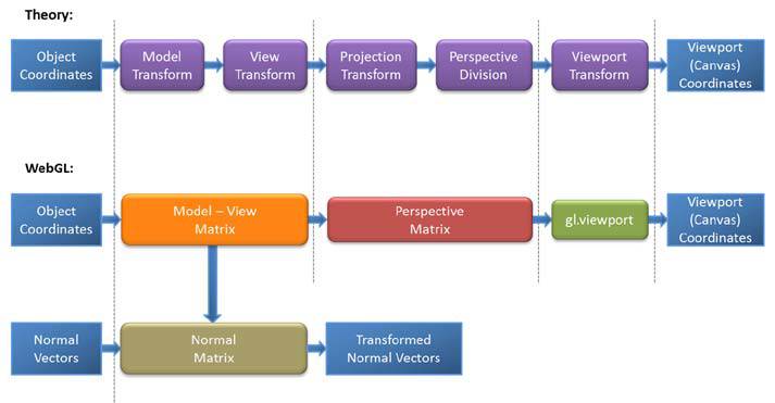 webgl中3D物体绘制到屏幕将经过以下几个阶段