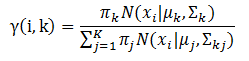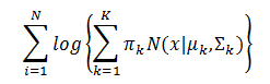 我们可以利用最大似然估计来确定这些参数,GMM的似然函数如下: