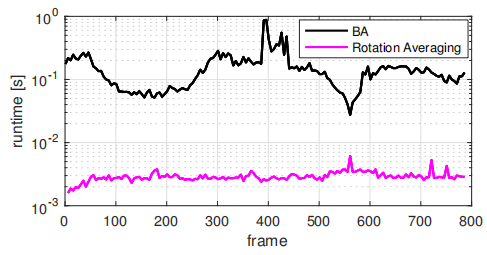 图7 增量旋转平均和BA的运行时比较。