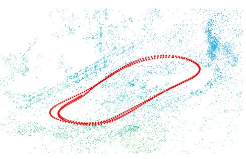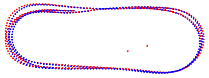 图4 重叠known_rotation_prob相机位置(红点)和真值(蓝点)。