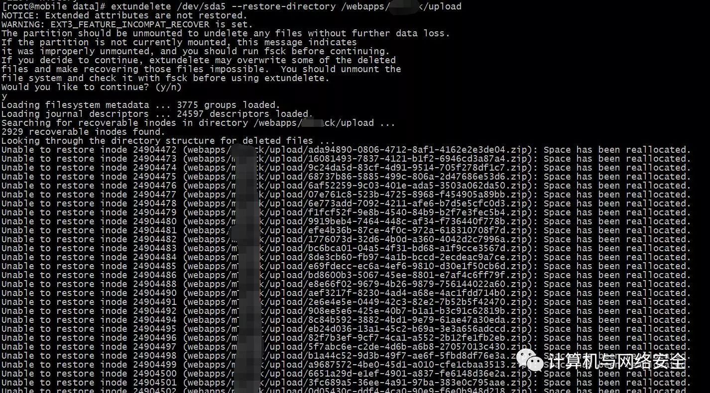 突发事件,应用上传的数据被程序自动删掉了,可悲的是还没有数据备份,数据是放在系统的 /data/webapps/xxxx/upload 目录下面,可把我们急坏了,之前又没有做过数据恢复的测试,然后我找到了一款数据恢复的软件,成功把删除的大部分数据找回来了,我的数据恢复过程如下。