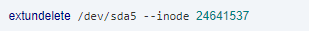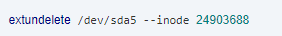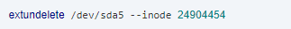 --restore-inode ino[,ino,...],恢复命令参数,表示恢复节点“ino”的文件,恢复的文件会自动放在当前目录下的RESTORED_FILES文件夹中,使用节点编号作为扩展名。