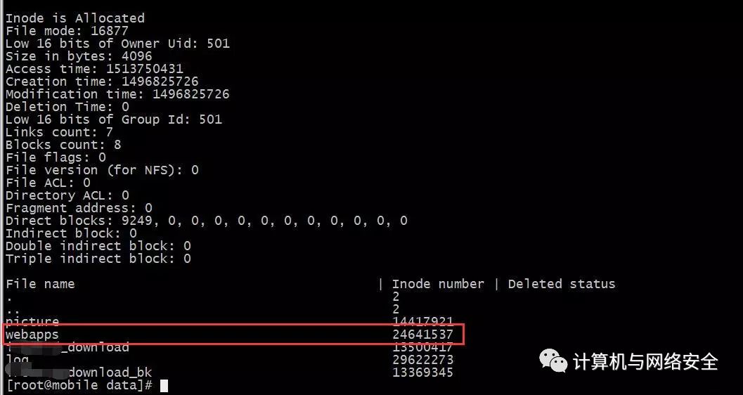 因为我的数据路径比较深,所以我们需要一步步查找,可以先从根分区 inode 查找