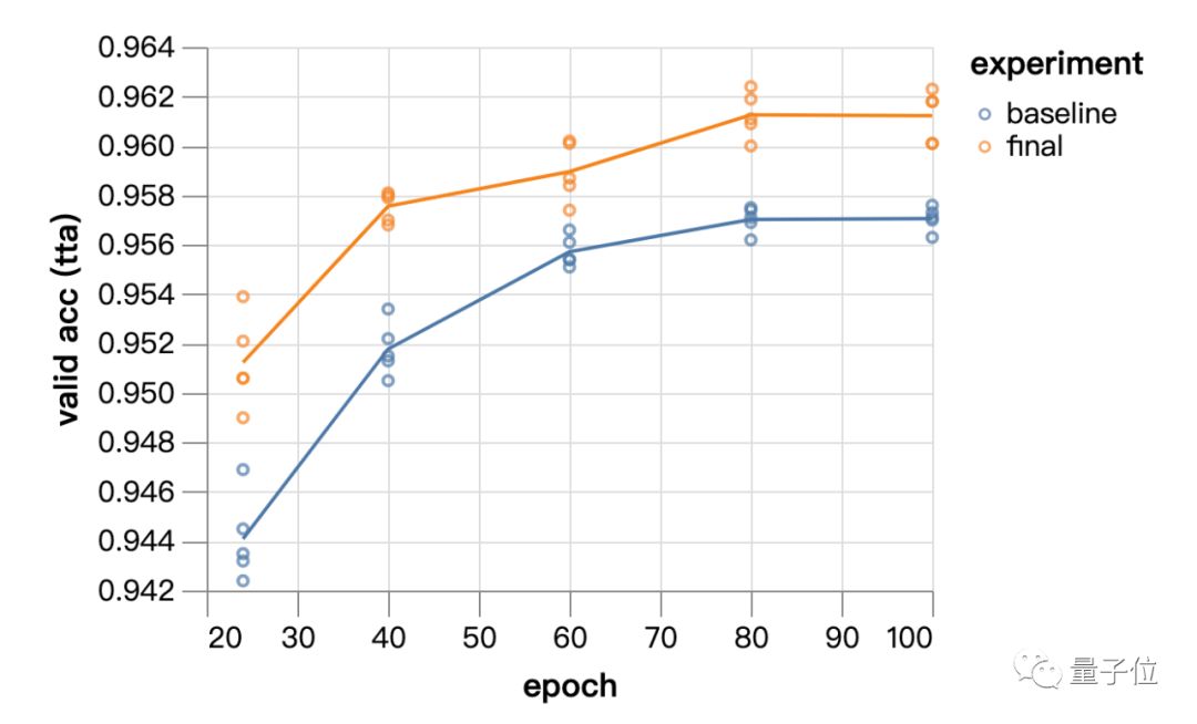 现在,虽然这一登顶成绩已经滑落到了第六位,但myrtle.ai表示在使用了与榜首Kakao Brain相同的TTA方法之后,实验模型的训练速度能降至26秒,超过Kakao Brain近10秒。