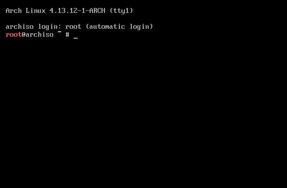 选择之后,它将打开一个tty1终端,您将使用它来安装操作系统。