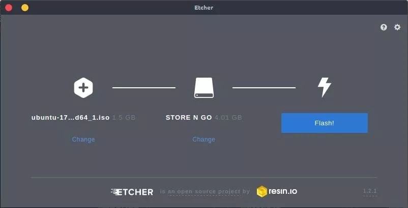 为 Ubuntu 选择 ISO 映像文件,然后选择闪存驱动器,然后单击 Flash! 创建可引导的闪存驱动器。等到它完成,瞧!你的可启动闪存驱动器已经准备好使用了。