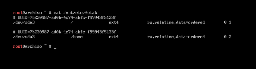 genfstab -U /mnt >> /mnt/etc/fstab